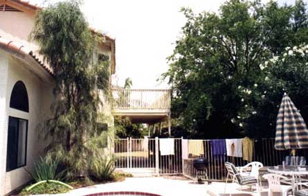 This is the view of our second floor deck as seen from the closest street. The need for a 40 meter antenna that would perform well and not violate the spirit of the Home Owner’s Covenants protecting the aesthetics of the neighborhood was the driving force behind the design of this vertical.
