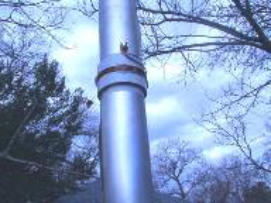 I cut two pieces aluminium flashing 8 1/2” X 30 1/2”. This is used to make the cylinders Cut 2 pieces of PVC pipe 36”. On one of the pieces mark the pipe 3/4” from the end (top of the cylinder). Bend the flashing around the pipe starting at the mark. This will be the top cylinder. Secure the flashing with sheet metal screws every 1 – 2”. Drill a hole on the bottom of the cylinder (long portion) and mount a 8 X 32 brass bolt 1/4” above the end of the cylinder. Mark the other PVC pipe 1 3/8” from the end. This will be the top of the bottom cylinder. Secure the flashing to the PVC pipe using sheet metal screws. Mount a 8 X 32 bolt 1/4” below the top of the bottom cylinder. Drill a small hole just above the bolt (this will be used to route the #14 enamel wire to the inside of the tube). Run the #14 enamel wire down the inside of the bottom tube. This wire should be as close to the PVC pipe as possible. Route the wire through the hole and mount to the bolt (remember to scrape the enamel off the wire before connecting to the bolt)