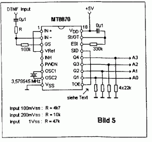 Resistor R at the input is dependent on input voltage. Pin TOE is useful to enable 3 Sate output of MT8870.