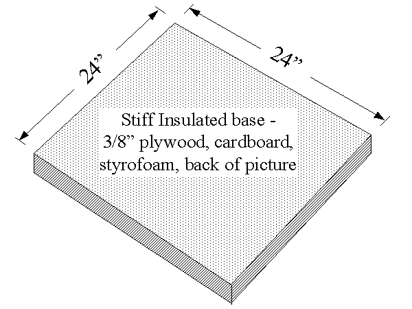 Get a 2′ x 2′ base – plywood, cardboard, stiff foam plastic, even the back of a wall-hung picture.