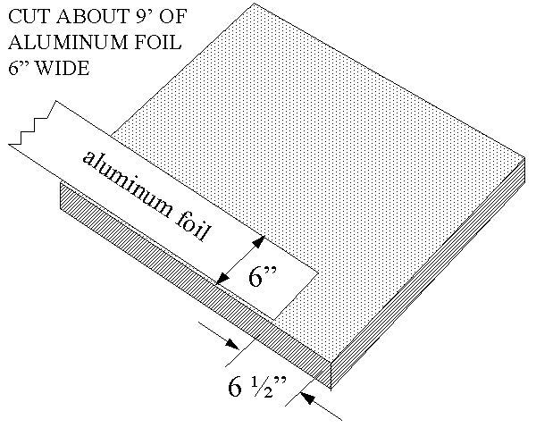 Cut a 6″ wide piece of aluminum foil. Lay it on the base, with its edge along the edge of the base. Note the 6 1/2″ gap where the foil begins.