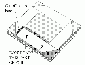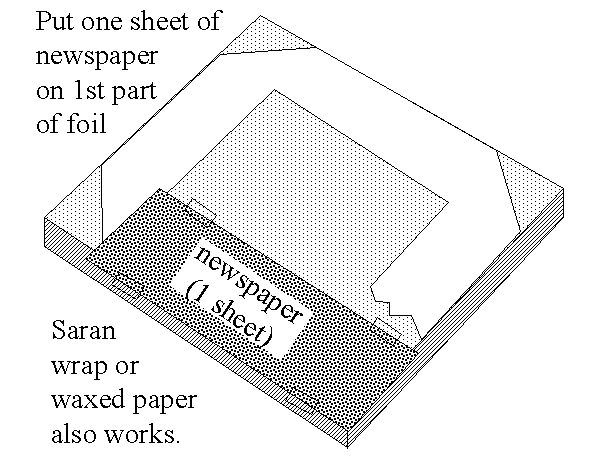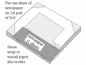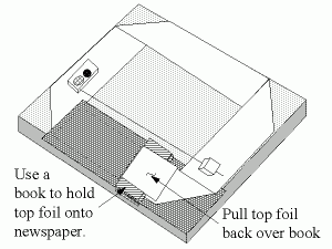 Leave the fifth flap of foil loose, so it can be lifted up when necessary. Cut off excess foil so it does not short circuit against the foil beneath the newspaper.