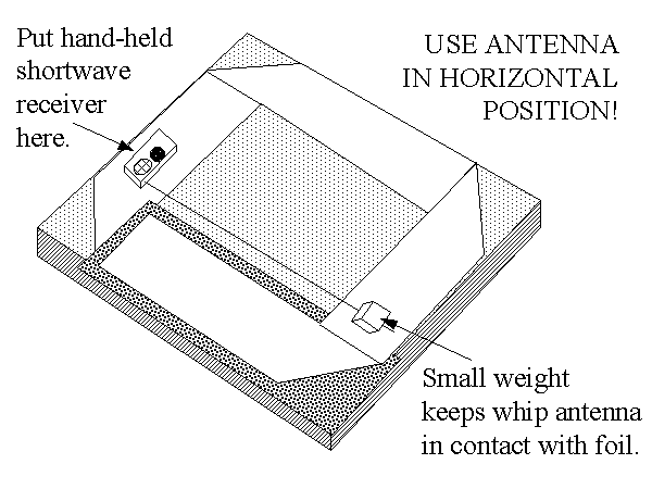 When using a battery-operated, pocket size shortwave receiver, set the antenna on a table, couch, bed, or on the floor. Keep it hoizontal.