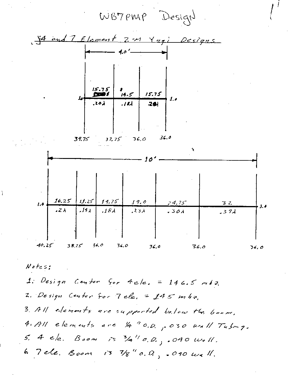 50 MHz 4 and 7 elements Yagi Drawings Posted on June 3, 2017 by Simone Just found this two old antenna drawings for a four and a seven elements yagi antenna by WB7PMP. Looks interesting plans but have not yet attempted to build them.