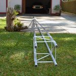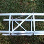 The various lateral stabilizing and connecting rods of the tower are made from rectangular shaped aluminum bar (17.0 mm x 6.5 mm) and are secured to the tubes with pop-rivets that are 1/2″x 3/16″ in diameter.