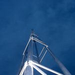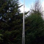 The tower properly set has an upper part formed by a 6 m mast with a single tube sliding portion of 5m by which Standing Wave Ratio (SWR) adjustments can be made. After the adjustment, single inox steel brace will keep the upper mast in position.