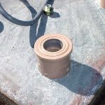 Glue is also applied on the tip of the pipe displayed above of the concrete mass.