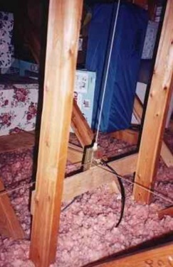 If you are lucky enough to have a large attic take advantage of this and lay out a extensive radial system, this is one area that you can do better than an outside installation also the better the radial system the less RF in your house. If you have a small attic do the best you can, don’t be afraid to bend to fit. Almost any size wire will work since mechanical strength is not a consideration. Cut your radials to the 1/4 wave length for your band(s). Radiator(s): On VHF & UHF full size and radiators with gain should be no problem, but on HF usually shortened or loaded radiators are your only choice. Use the longest radiator you can get away with that is at least a few inches away from the roof. It’s OK to fold over the top is you have to. If you can, add some tubing on top to turn it into a T for best pattern. Shortened 11m for 10m or Hamsticks for other bands work well. Also several radiators can be installed on one mount for multi-band operation with matching radials, but this does not always work because of interaction between the bands. Coax: Use a good quality coax cable to reduce RF & interaction problems.