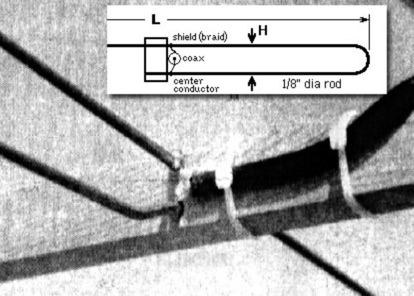 902/903 MHz. This was the first antenna I built using the antenna to control the driven element impedance. The 2 1/2′ length has proven practical, so I haven’t built any other versions. Driven element dimensions are L = 5.7″ and H = 1/2″ Elements are 1/8″ diameter.