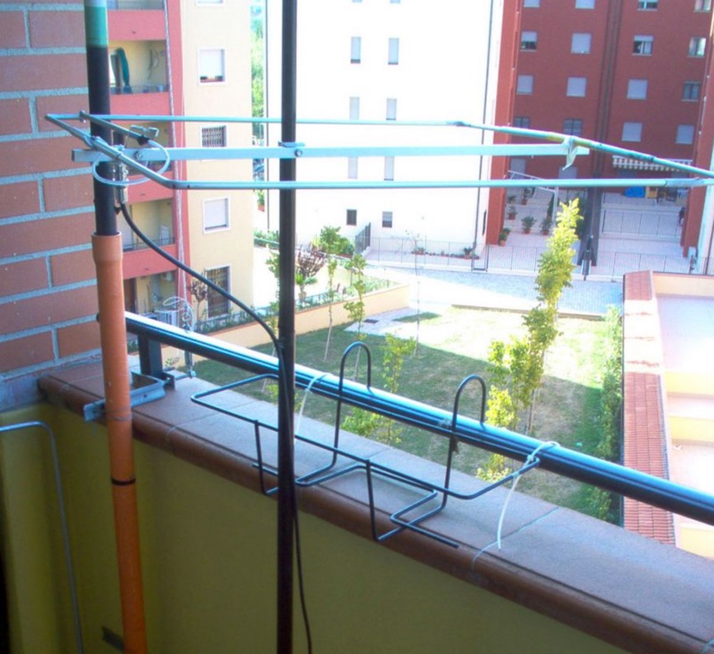 The halo is an omni-directional antenna with horizontal polarization. This is practically a horizontal loop, namely a half-wave folded dipole, with its endings slightly separated. The feeding is done through a system called gamma-match with the condenser obtained by inserting the central core of rg58 cable including the insulator, inside the aluminum tube that forms the gamma-match.