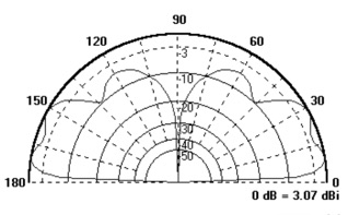 This design has an honest 3 dBi of gain at 6′ elevation (2 dBi free-space) with a suitable pattern for LEO communications–favoring the horizon. At 20′ high, the same antenna exhibits almost 6 dBi of gain. The feedpoint is a nominal 50 Ohms at 146.850 mHz.