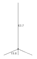 The figure at right shows the layout and dimensions (in cm) of the elements. A 25-3/16″ (64 cm) vertical section is combined with four 7-3/16″ (20 cm) radials. I recommend you make the elements slightly longer and then trim them based on SWR readings. I used 10 gauge insulated wire for all the elements, but 1/8″ or 3/16″ aluminum rod would be a suitable material–and likely more durable. When tuning for minimum SWR, I eventually pruned the mast to 24-3/4″ and the radials to 7″ to get a 1.2:1 SWR. That is much better than my mag-mount ever showed so I stopped fine-tuning and put it on the air.