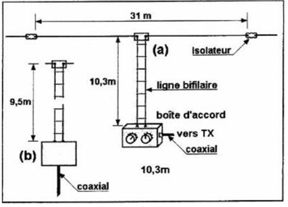 In some cases, this is still too large to fit in one’s yard, and not everyone can convince their neighbors to allow one to stretch the wire across property lines. In this case, a 1/2-size version, covering 7 to 28 MHz is useable.