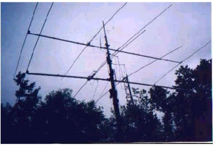 3. 2-el 80 meter rotating diamond quad, 40-ft [12m] boom diamond tip at 117-ft. [35m](North American QRM down 7-“S” units on the side when working Europe)(GK 91) gain 5-DBD
