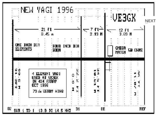 This antenna was used as a reference source for my 5X5 and 4X4 stacked arrays for a period of time. My QTH was about 6 KM away.