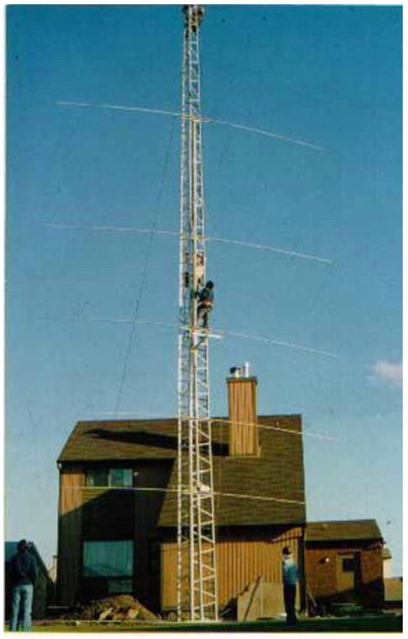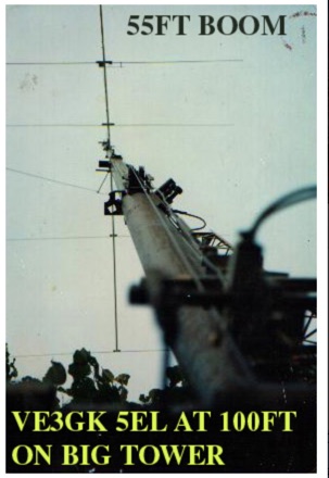 Ve3gk, doing his “walk the boom trick” in my younger stupid days! Near home brew 60-ft 20-m yagi at 90-ft
