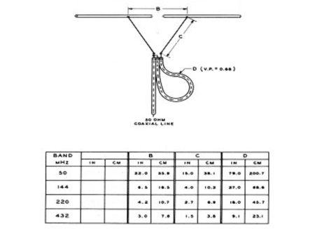 Other very important criteria are the low weight (8oz), compactness (Plate 2.), speed of assembly (30 seconds) and a good match into 50 Ohm coaxial cable. After much experimenting the latter was achieved with a simple delta match feed system with a 4:1 coaxial balun. This produced an SWR of +/- 1.5 and is quite different to the original article, which used 60W coaxial cable!