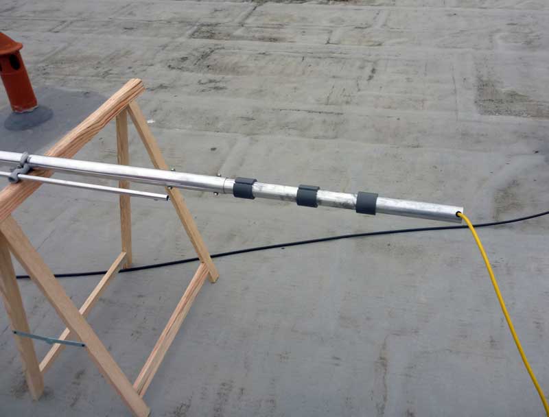 I will install my antenna on the metal roof of my shed.. placed in a garden-umbrella-stand and guyed of course. There is no other possibilities or places… A end of my OCF antenna is near, but it is horisontal, so I think it do not disturb.. I will se what happens when i get the antena in place.