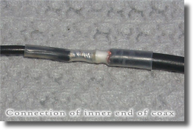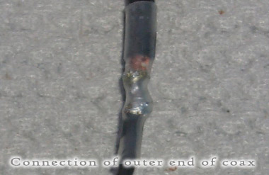 Photo C – Connection of outer end of coax section (further from center). Note that both center conductor and shield are connected to the wire.