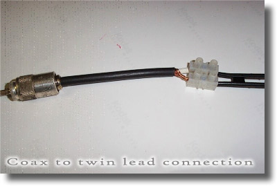 - An electrical connector, available from most electrical parts stores, to connect the twin lead and coax